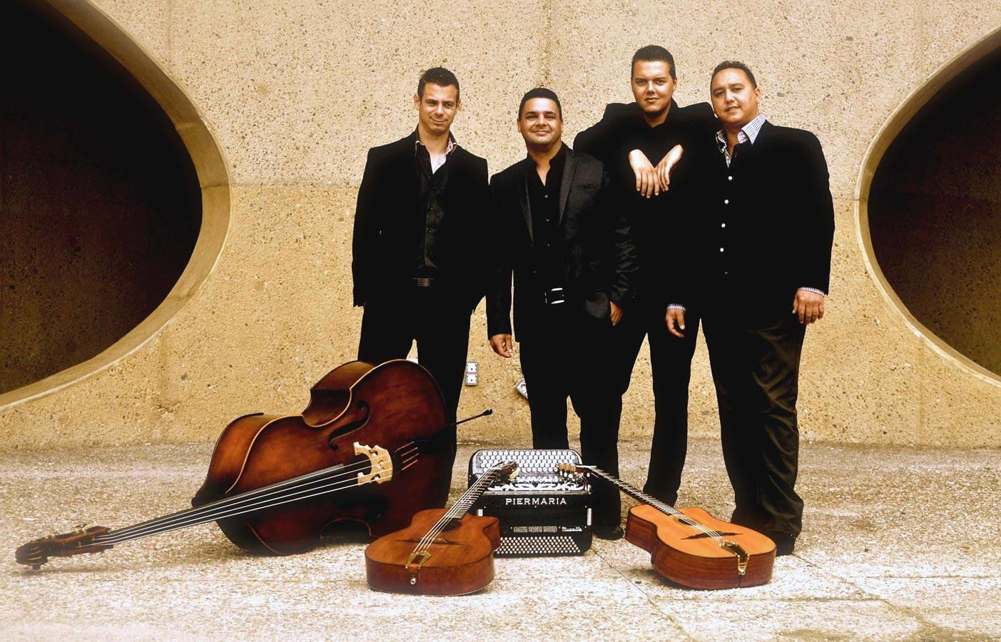 Dominique Paats (acc), Romino Grünholz (g), Noah Schäfer (cb), et Paulus Schäfer (g). © Irene Ypenburg2014 Album "Rocky", avec Stochelo Rosenberg (g), Dominique Paats (acc),